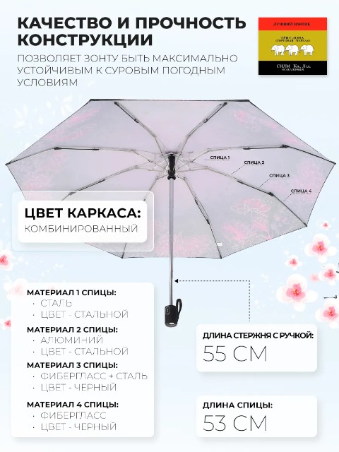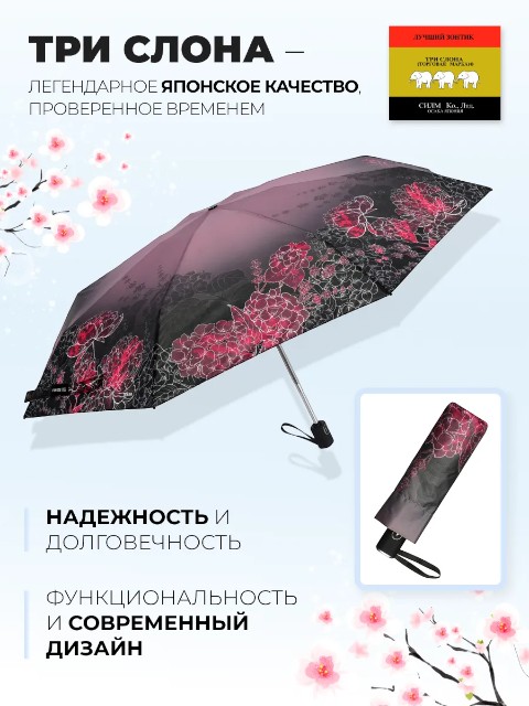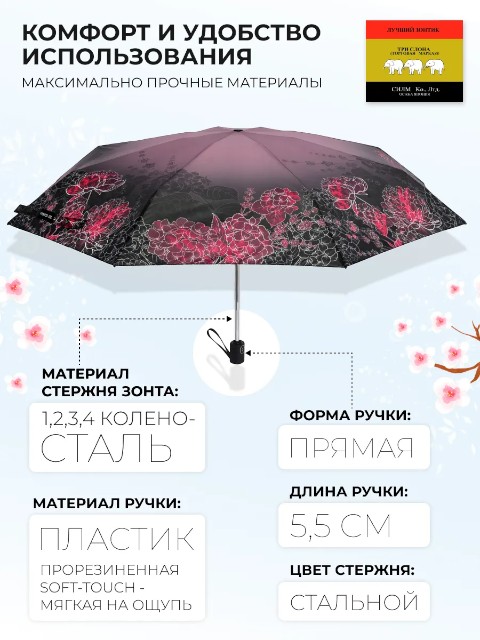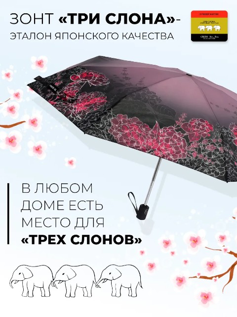 В комплект входят зонт, чехол и фирменный пакет «Три слона» — удобно для хранения и если зонт выбирается в подарок.