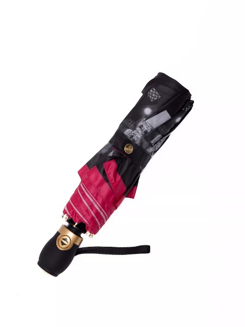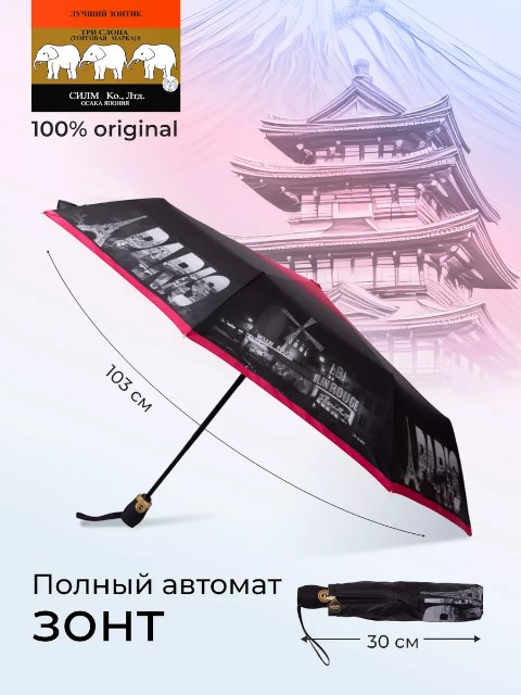 Складной зонт «Три слона» в расцветке черный/розовый — удобный аксессуар для защиты от дождя и солнца, рассчитанный на ежедневное использование в городе и в поездках. Компактная длина в сложенном виде 30 см позволяет носить зонт в сумке или хранить в автомобиле, а купол диаметром 103 см (по низу, от спицы до спицы) обеспечивает уверенное укрытие в непогоду.