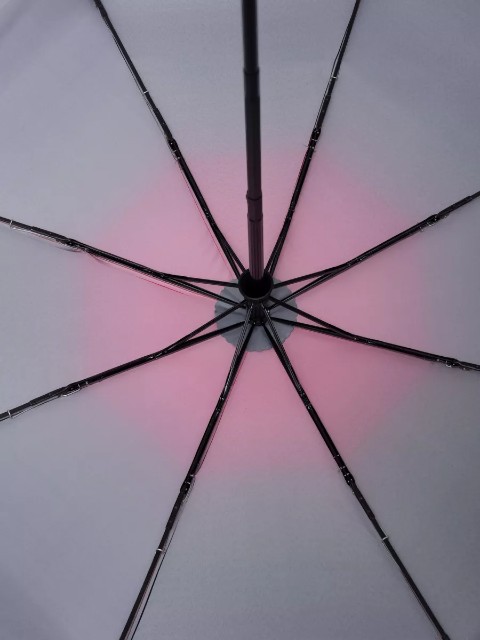 Модель оснащена механизмом автомат: зонт быстро открывается, а в закрытом виде фиксируется кнопкой. Каркас выполнен из комбинации стали, алюминия и фибергласа, что дает хорошую прочность и устойчивость. Конструкция на 8 спицах помогает куполу держать форму и выдерживать регулярные нагрузки. Встроенная система «антиветер» снижает риск поломок при порывистом ветре: при сильных порывах купол может выворачиваться, амортизируя нагрузку на спицы.