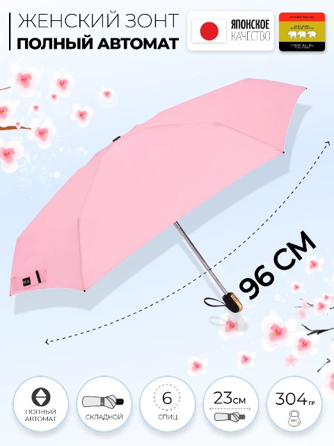 Ручка из пластика с покрытием soft touch обеспечивает комфортный хват и не скользит в ладони. В комплекте предусмотрены чехол на молнии и подарочный пакет. Модель относится к серии новинка 2026 и подойдет тем, кто ищет компактный, удобный и надежный зонт на каждый день.