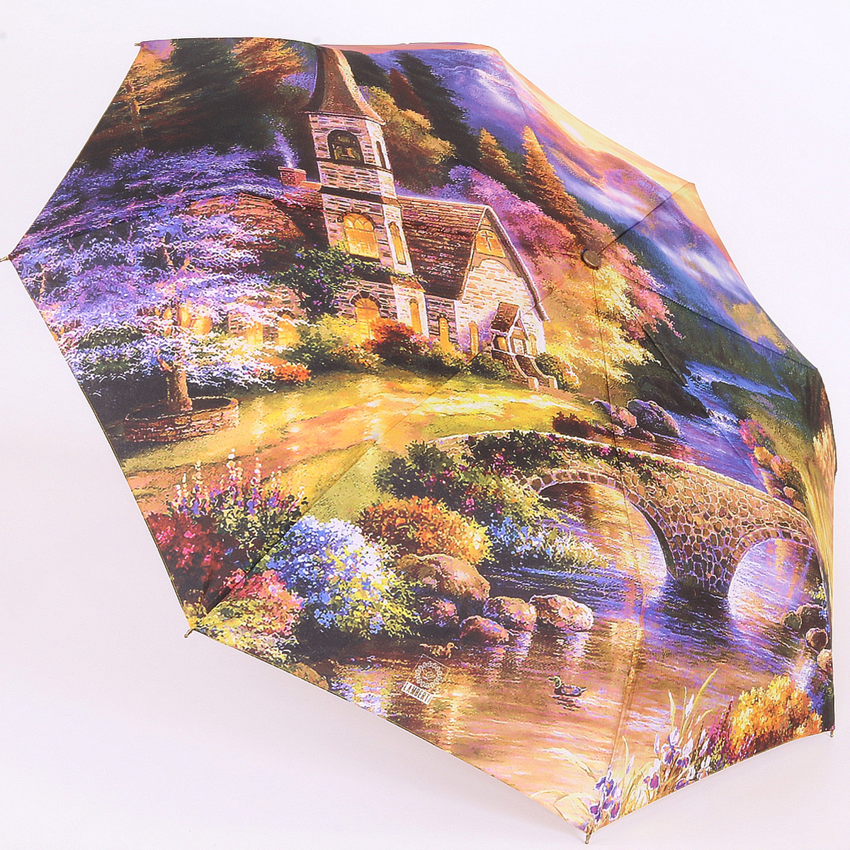 Купол зонта выполнен из полиэстера,эта ткань устойчива к выцветанию и загрязнениям.Зонт фирмы Lamberti,порадует вас в дождливую погоду своим ярким рисунком.