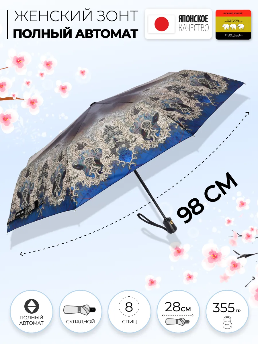 Зонт оснащен механизмом полный автомат — открытие и закрытие выполняются нажатием кнопки. Это удобно в транспорте, у входа в здание или при выходе из автомобиля, когда важно быстро раскрыть зонт и так же быстро сложить его одной рукой.