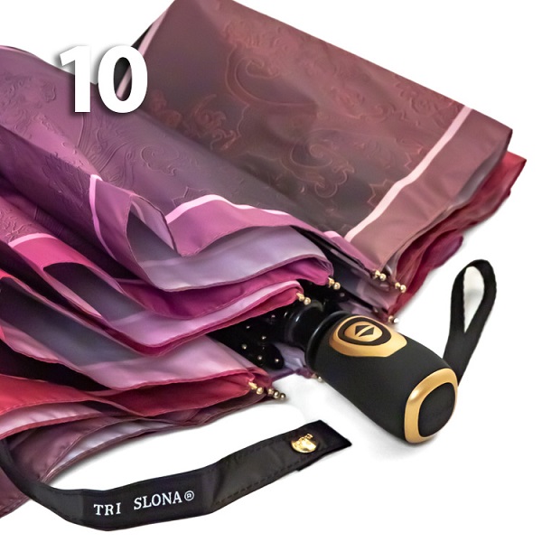 Зонт Три слона этой модели отличается прочностью и устойчивостью к поломкам. В его каркасе 10 спиц из фибергласса.