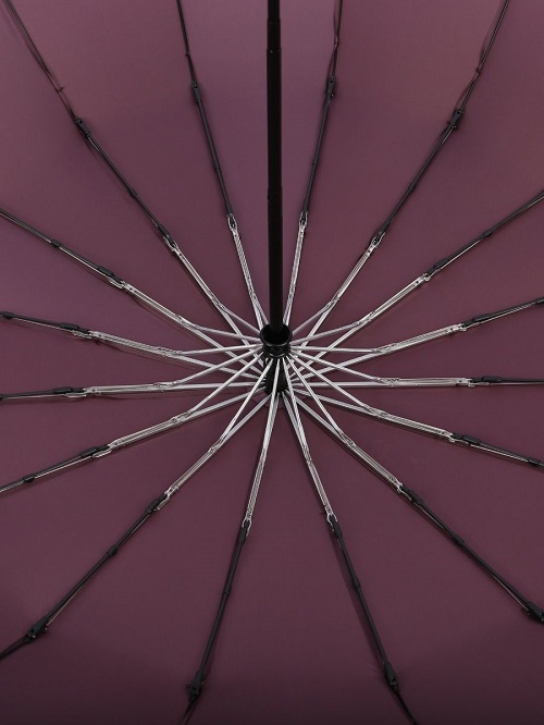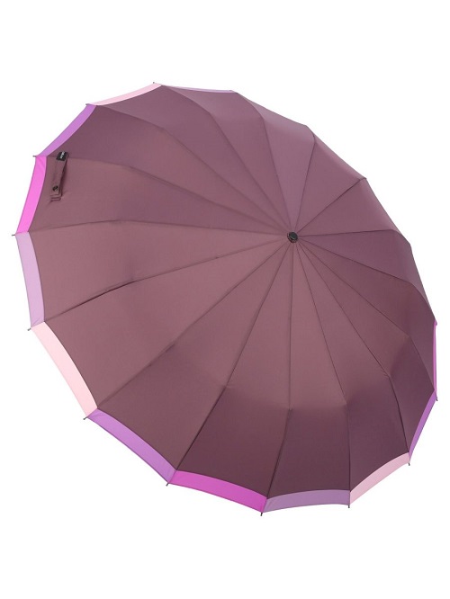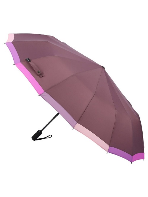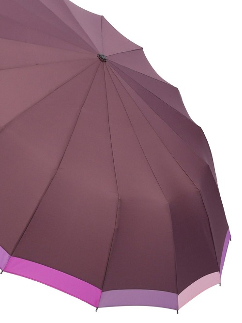 Необычный баклажановый зонтик от дождя с разноцветными вставками между спицами,представляет японский производитель Три Слона. Элегантный аксессуар с привлекательным оформлением отличается и практичными свойствами. Зонт полностью автоматический, купол раскрывается и складывается нажатием на кнопку. Каркас сделан из стали,алюминия и фибергласса, а ручка отделана прорезиненным материалом. Стильная модель для современных женщин.