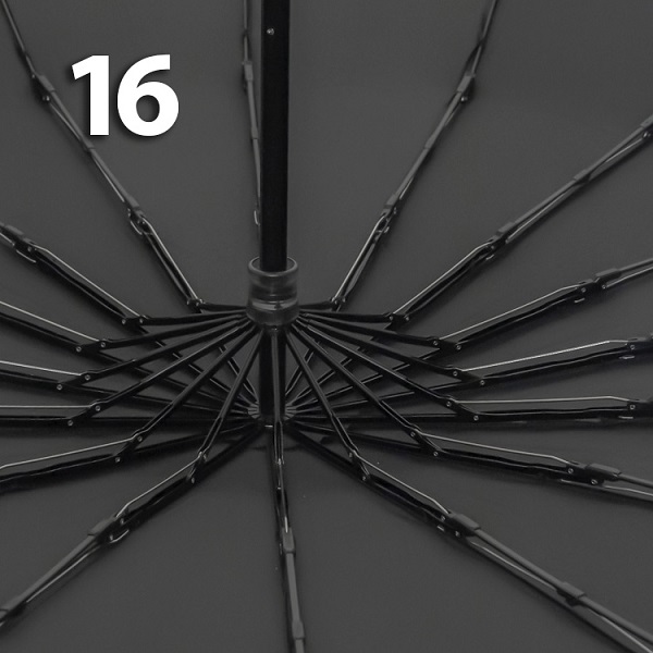В каркасе зонта этой модели 16 спиц с последним звеном из фибергласса, которые обеспечивают превосходное натяжение ткани купола и устойчивость к поломкам при любых погодных условиях. Прочный стержень выполнен из стали.